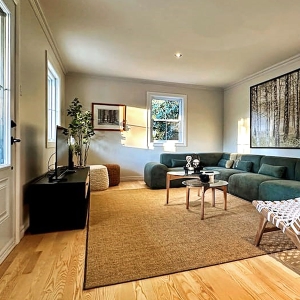 The old aluminum sliding windows, which were less energy-efficient, were replaced with hybrid hung windows, designed with a delicate grid pattern and PRESIDENT’s unique ISO-THERMA Technology. The homeowners opted for black exterior framing but preferred white PVC indoors to keep the look clean and bright.